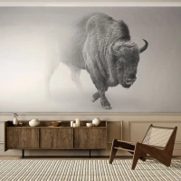 Fotobehang Standard Eco - Koning van de prairie - Wijs, Dieren, Bizon - 400x280 cm