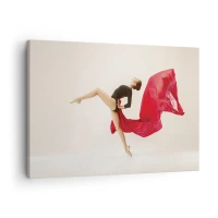 Schilderen op canvas - Een dynamische danseres in een zwart pak en rode stof in beweging. - 70x50cm - rood en zwart - Moderne wanddecoratie voor woonkamer en slaapkamer ARTTOR