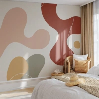 Fotobehang Standard Eco - Abstracte organische vormen in warme kleuren - 100x70cm - Kronkels of krullen? - Moderne wanddecoratie voor woonkamer en slaapkamer ARTTOR