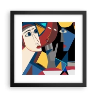 Poster in een zwarte lijst - Een gesprek tussen kubisten - 30x30 cm