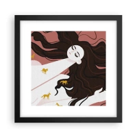 Poster in een zwarte lijst - Droom over een gouden paard - 30x30 cm