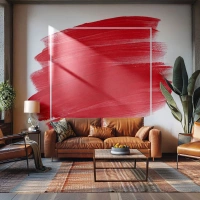 Fotobehang Standard Eco - Rode penseelstreek op een witte achtergrond in een artistieke compositie - 100x70cm - Uit het frame - Moderne wanddecoratie voor woonkamer en slaapkamer ARTTOR