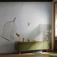 Zelfklevend Fotobehang Deluxe Sticker - In je element - Abstractie, Vogel, Vogelkooi - 400x280 cm