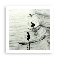 Een poster in een licht eiken lijst - Om de golf te ontmoeten - 50x50 cm