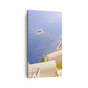 Schilderen op canvas - Grieks landschap in wit en blauw - 65x120 cm