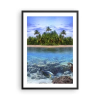 Poster in een zwarte lijst - Een tropisch eiland met een koraalrif en exotische vissen. - 50x70cm - Hemels eiland nodigt je uit - Moderne wanddecoratie voor woonkamer en slaapkamer ARTTOR
