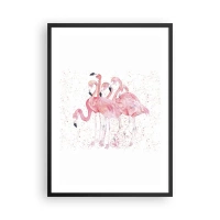 Poster in een zwarte lijst - Een groep roze flamingo's op een witte achtergrond - 50x70cm - Roze ensemble - Moderne wanddecoratie voor woonkamer en slaapkamer ARTTOR