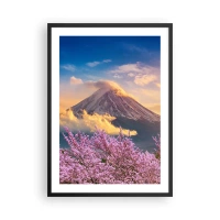 Poster in een zwarte lijst - De berg Fuji omringd door kersenbloesems bij zonsondergang - 50x70cm - Japanse heiligheid - Moderne wanddecoratie voor woonkamer en slaapkamer ARTTOR