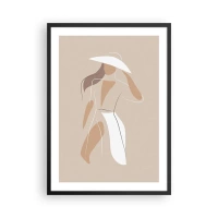 Poster in een zwarte lijst - Een minimalistisch silhouet van een vrouw met een hoed op een beige achtergrond. - 50x70cm - Mode is leuk - Moderne wanddecoratie voor woonkamer en slaapkamer ARTTOR