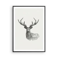 Poster in een zwarte lijst - Een hert in kubistische stijl - 70x100 cm