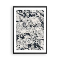 Poster in een zwarte lijst - Abstracte zwart-wit textuurcompositie - 50x70cm - Interpenetratie van tegenstellingen - Moderne wanddecoratie voor woonkamer en slaapkamer ARTTOR