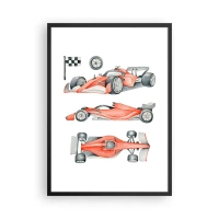 Poster in een zwarte lijst - Aquarelillustratie van een raceauto - 50x70cm - Jaag je droom na - Moderne wanddecoratie voor woonkamer en slaapkamer ARTTOR