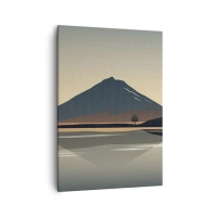 Poster in een zwarte lijst - Een minimalistisch berglandschap met een weerspiegeling in een meer - 50x70cm - Spiegelreflectie - Moderne wanddecoratie voor woonkamer en slaapkamer ARTTOR