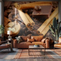 Fotobehang Standard Eco - Concert van aroma's - Gastronomie, Chocolade, Koffiebonen - 450x315 cm