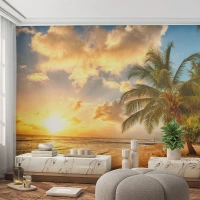 Fotobehang Standard Eco - Eeuwige zomer, altijd vakantie - Landschap, Strand, Kokospalm - 350x256 cm