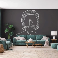 Fotobehang Premium Canvas - Schoonheid bloeit in stilte - Vrouw, Tekening, Lijn - 100x70 cm