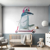 Fotobehang Premium Canvas - Badger vreugde - Kinderen, Scooter, Dier - 450x315 cm