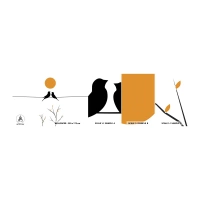Fotobehang Monster Zelfklevend Deluxe Sticker - Nachtegalen avond - Abstractie, Vogels, Grafisch - 100x30 cm