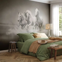 Fotobehang Premium Sand - Witte waanzin - Dieren, Paarden, Natuur - 400x280 cm