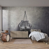 Fotobehang Standard Eco - Tijd van strijd en Tijd van vrede - Doos, Bokshandschoenen, Vintage - 400x280 cm