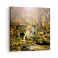 Schilderen op canvas - Boscascade in het groen - 40x40 cm