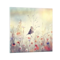 Schilderen op glas - Vogelportret met een weiland op de achtergrond - 70x70 cm