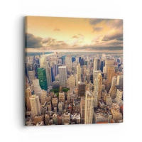 Schilderen op canvas - Stadspanorama met uitzicht op wolkenkrabbers bij zonsondergang - 70x50cm - Vergulde metropool - Moderne wanddecoratie voor woonkamer en slaapkamer ARTTOR