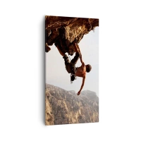 Schilderen op canvas - De wereld gekrompen in een hand op een rotsblok - 65x120 cm
