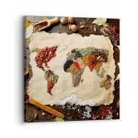 Schilderen op canvas - Een wereldkaart van specerijen op een houten achtergrond. - 70x50cm - Alle smaken van de wereld - Moderne wanddecoratie voor woonkamer en slaapkamer ARTTOR