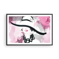 Poster in een zwarte lijst - Portret van een dame in zwart en roze - 91x61 cm