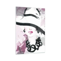 Schilderen op glas - Portret van een dame in zwart en roze - 80x120 cm