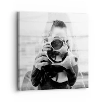 Schilderen op canvas - Zwart-wit dubbelbelicht portret van een fotograaf - 70x50cm - Maker en materiaal - Moderne wanddecoratie voor woonkamer en slaapkamer ARTTOR