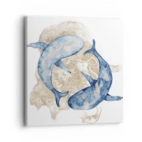 Schilderen op canvas - Abstracte blauwe vinvissen op een lichte achtergrond - 70x50cm - Vriendschap of liefde? - Moderne wanddecoratie voor woonkamer en slaapkamer ARTTOR