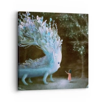 Schilderen op canvas - De figuur van een meisje tegenover een fantastisch wezen - 70x50cm - Fantastische ontmoeting - Moderne wanddecoratie voor woonkamer en slaapkamer ARTTOR