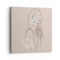 Schilderen op canvas - Minimalistische illustratie van een vrouw met contouren op een beige achtergrond - 70x50cm - meisjesachtig icoon - Moderne wanddecoratie voor woonkamer en slaapkamer ARTTOR