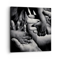 Schilderen op canvas - Zwart-witte handen van verschillende generaties - 70x50cm - Om mens te zijn - Moderne wanddecoratie voor woonkamer en slaapkamer ARTTOR