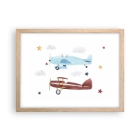 Een poster in een licht eiken lijst - Meneer Piloot, we wachten! - 40x30 cm