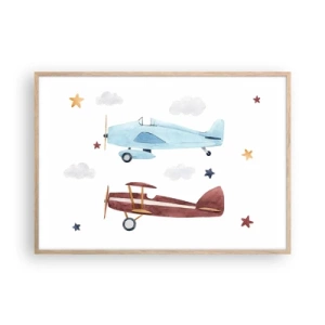 Een poster in een licht eiken lijst - Meneer Piloot, we wachten! - 100x70 cm