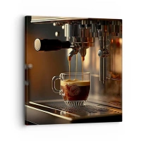 Schilderen op canvas - Koffiemachine met een kopje aromatische espresso - 70x50cm - Een sensuele mix - Moderne wanddecoratie voor woonkamer en slaapkamer ARTTOR